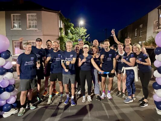 A team of nine local people who ran all the way from Land’s End to Teddington over two days crossed the finish line on Sunday 6th October to cheers and champagne.